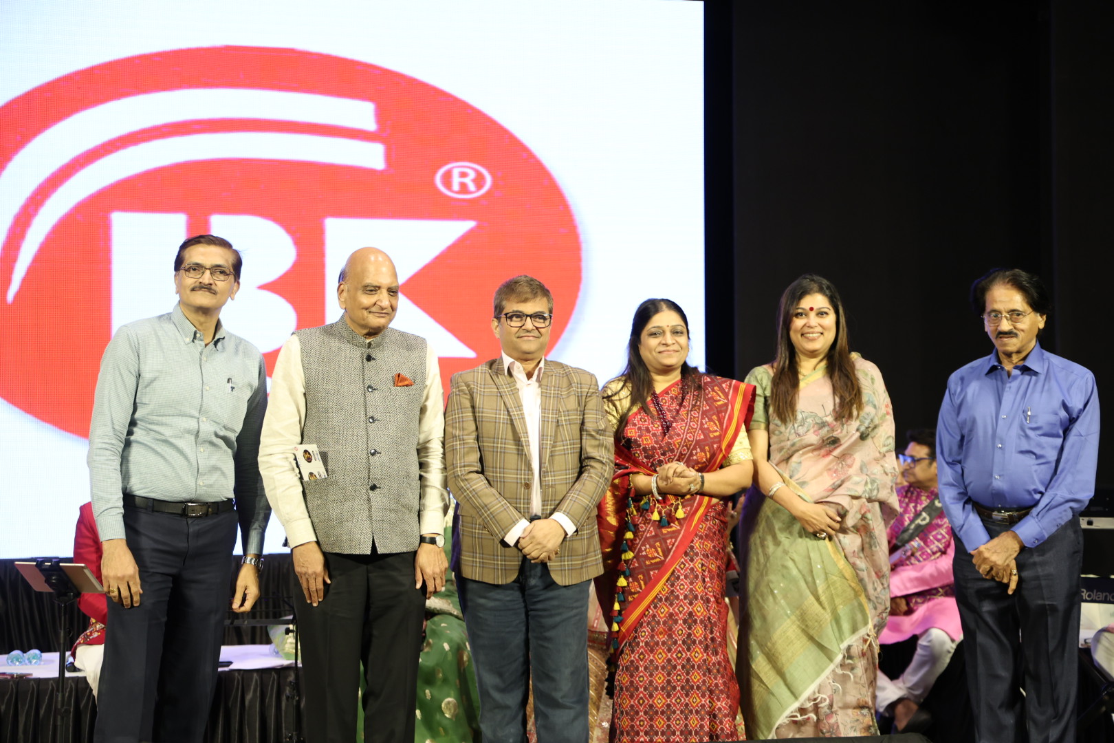 ખાદી ગ્રામોદ્યોગનાં સીઈઓ અને ભૂતપૂર્વ ટેક્સટાઈલ કમિશનર રૂપરાશિ મહાપાત્રાનું સન્માન કરતાં (ડાબેથી) શિવપાલ દુબે, ફેડરેશન અૉફ મુંબઈ રિટેલ ક્લૉથ ડીલર્સ ઍસોસિયેશનના પ્રેસિડન્ટ ધીરજ કોઠારી, કુન્દનભાઈ, શિવ કનોડિયા, ભૂપેન વડગામા અને શ્રી માર્કેટ સિલ્ક મર્ચન્ટ્સ એસોસિયેશનના પ્રેસિડન્ટ નીરજ મહેતા